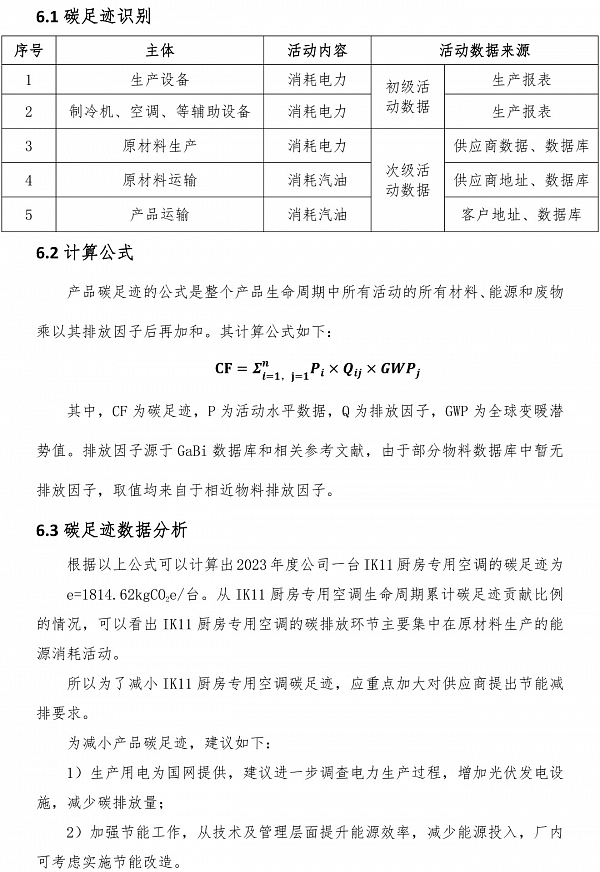 IK11 廚房專用空調(diào)碳足跡核算報告
